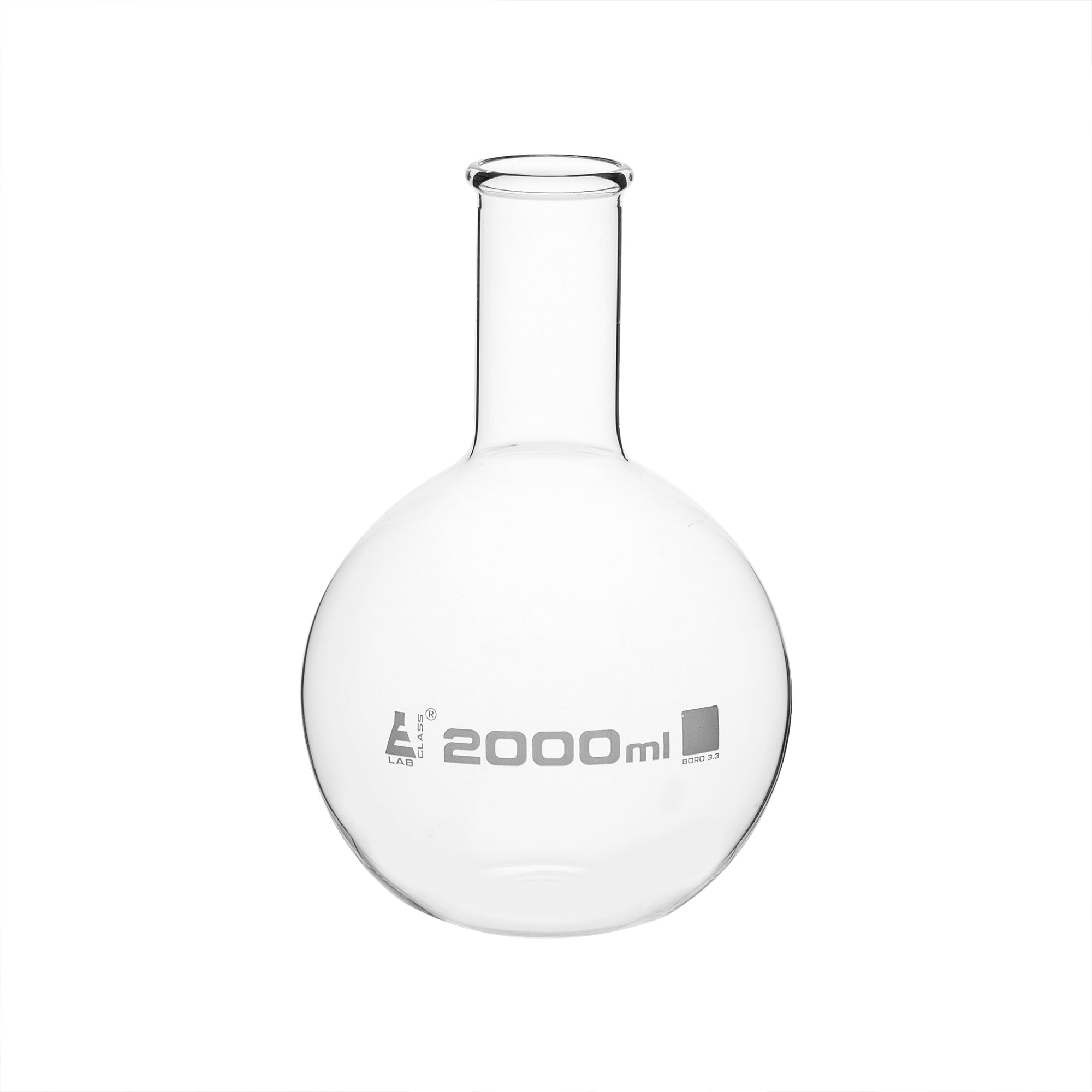 CH0402H Matraz de Ebullición 2000ml de vidrio borosilicato 3.3, cuello angosto, fondo plano Eisco