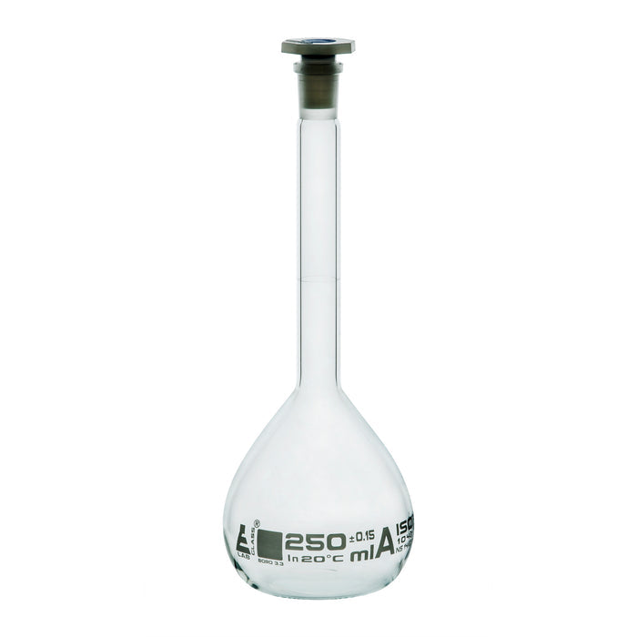 MATRAZ VOLUMÉTRICO (AFORADO) 250ML, CLASE A, TAPÓN DE POLIPROPILENO EISCO